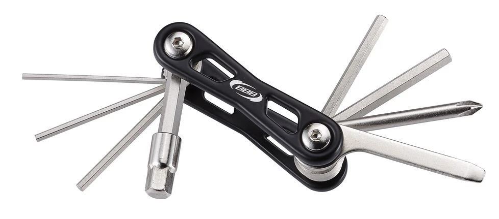 MINIFOLD S BTL-40S Outils résistants combinés à un boîtier en aluminium léger. Boulon à clavette hexagonal double face, ne se sépare pas lors de l’utilisation. 9 fonctions: Clés fonctions: 2, 2,5, 3, 4, 5, 6 et 8mm. Tournevis cruciformes et plats.