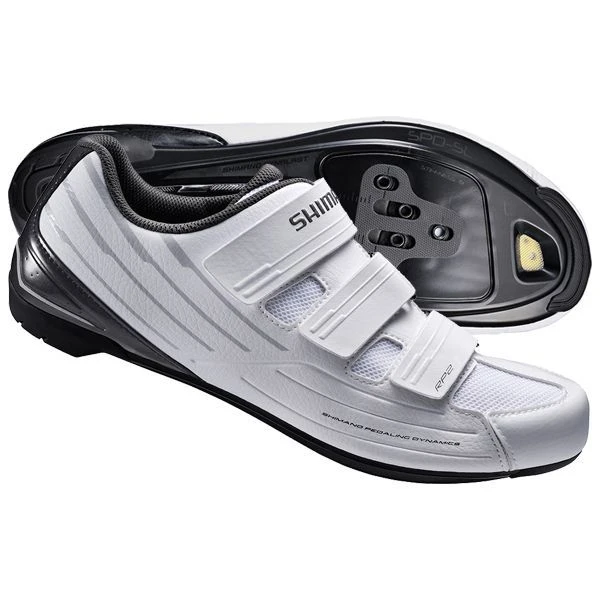 Chaussures de cyclisme Shimano RP2 dotées d’une tige en cuir synthétiquesouple et résistant et d’une fermeture à triple bande pour une coupe précise et rapide sans points de pression ni abrasions. Technologie Dynalast de Shimano pour un ajustement précis et une efficacité de pédalage améliorée. Semelle composée de Nylon renforcé en fibre de verrepour améliorer le transfert de puissance.