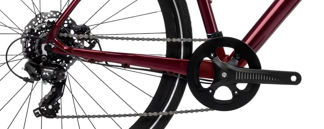 Le cadre est en aluminium, promettant légèreté et efficacité. Sa géométrie Sport met l’accent sur le confort du cycliste. Ce cadre a surtout l’avantage d’être robuste et rend votre trajet plaisant grâce à sa simplicité et son montage d’accessoires possible.